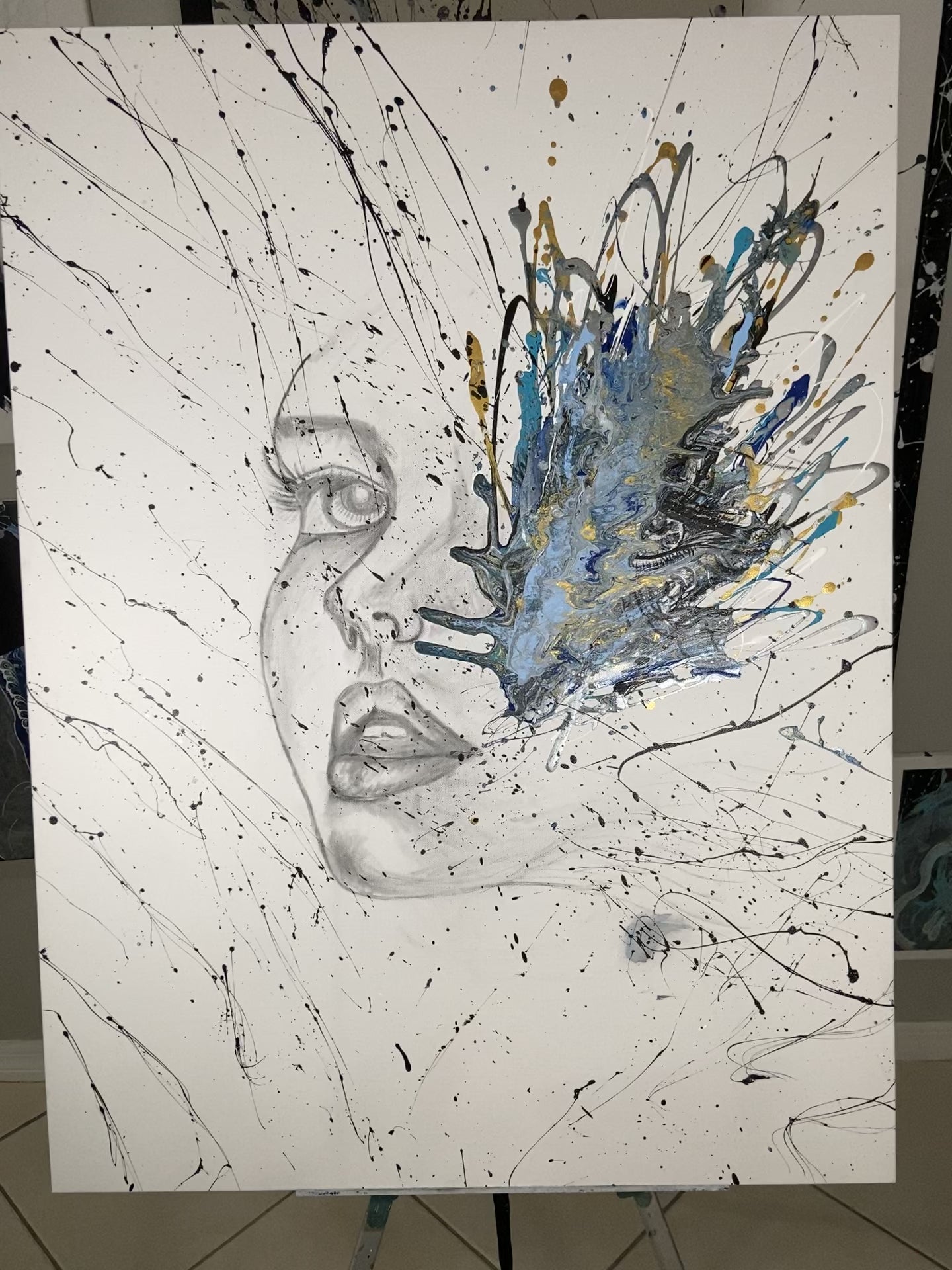 Acrylic Paint and Loose Charcoal Portrait on White Canvas