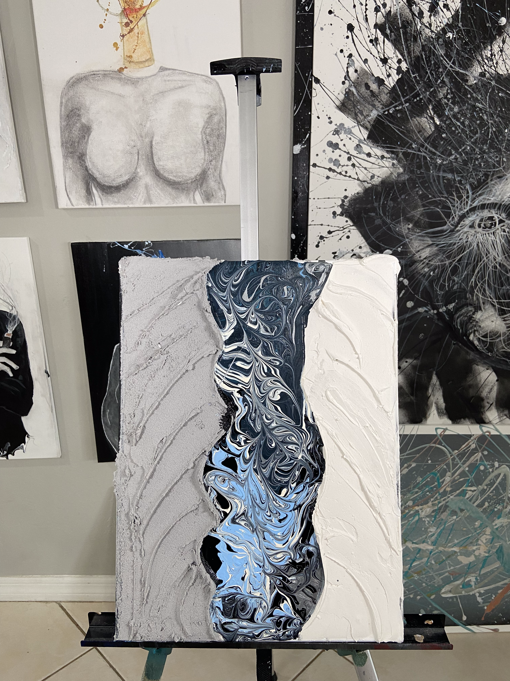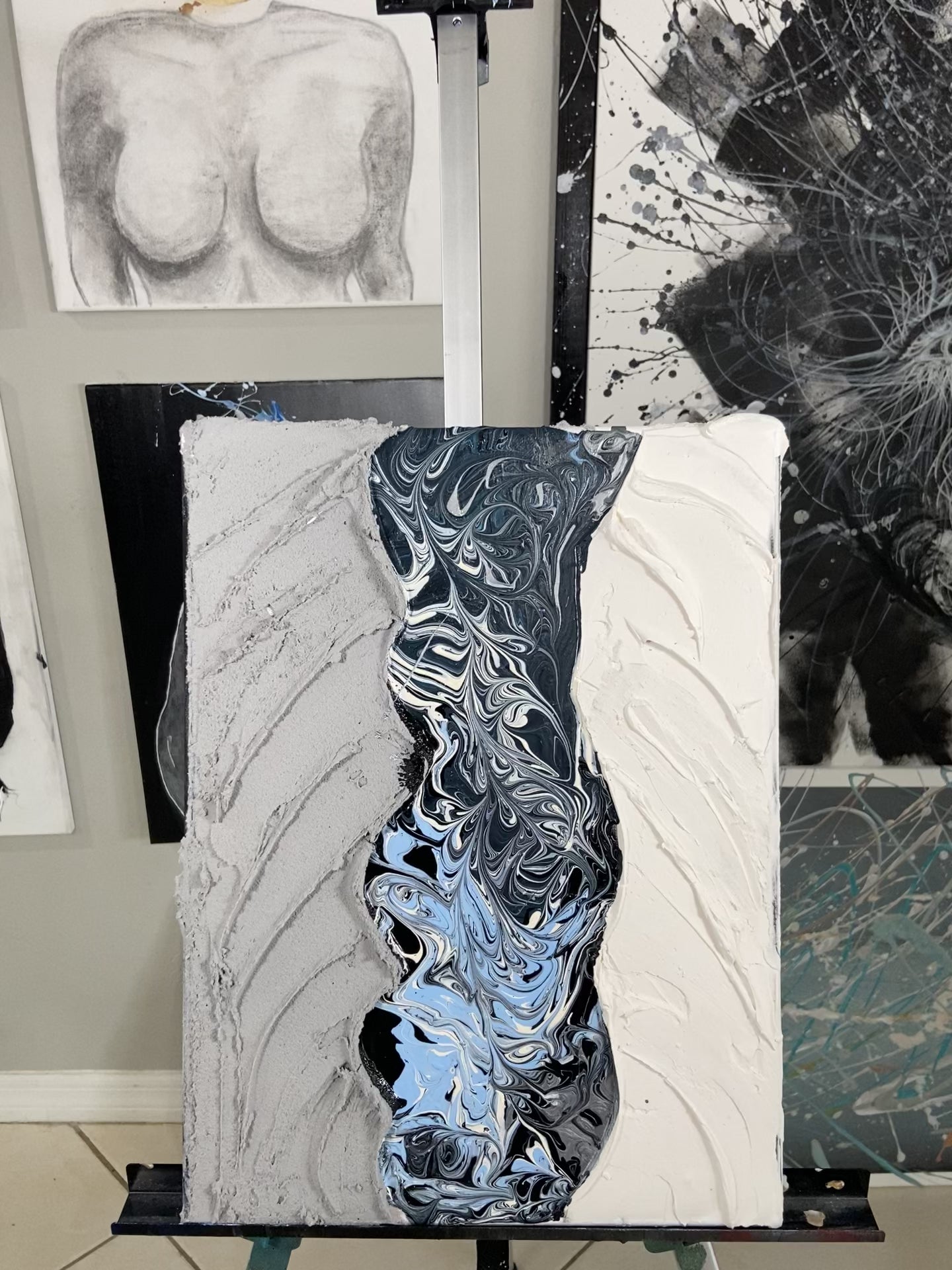 Cement, Plaster. and Acrylic Paint on White Canvas