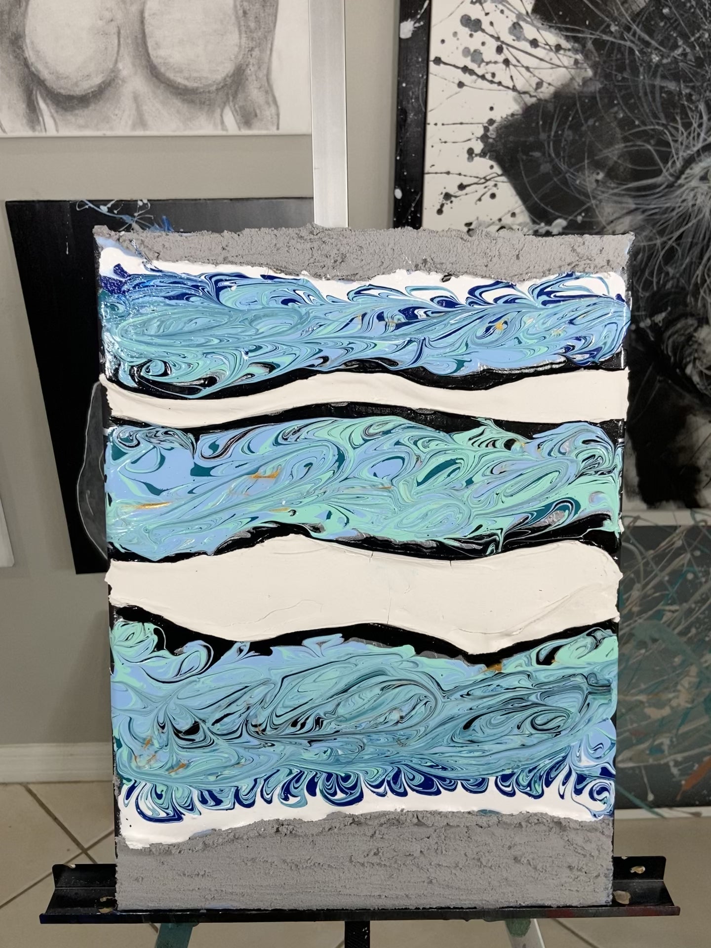 Cement, Plaster. and Acrylic Paint on White Canvas
