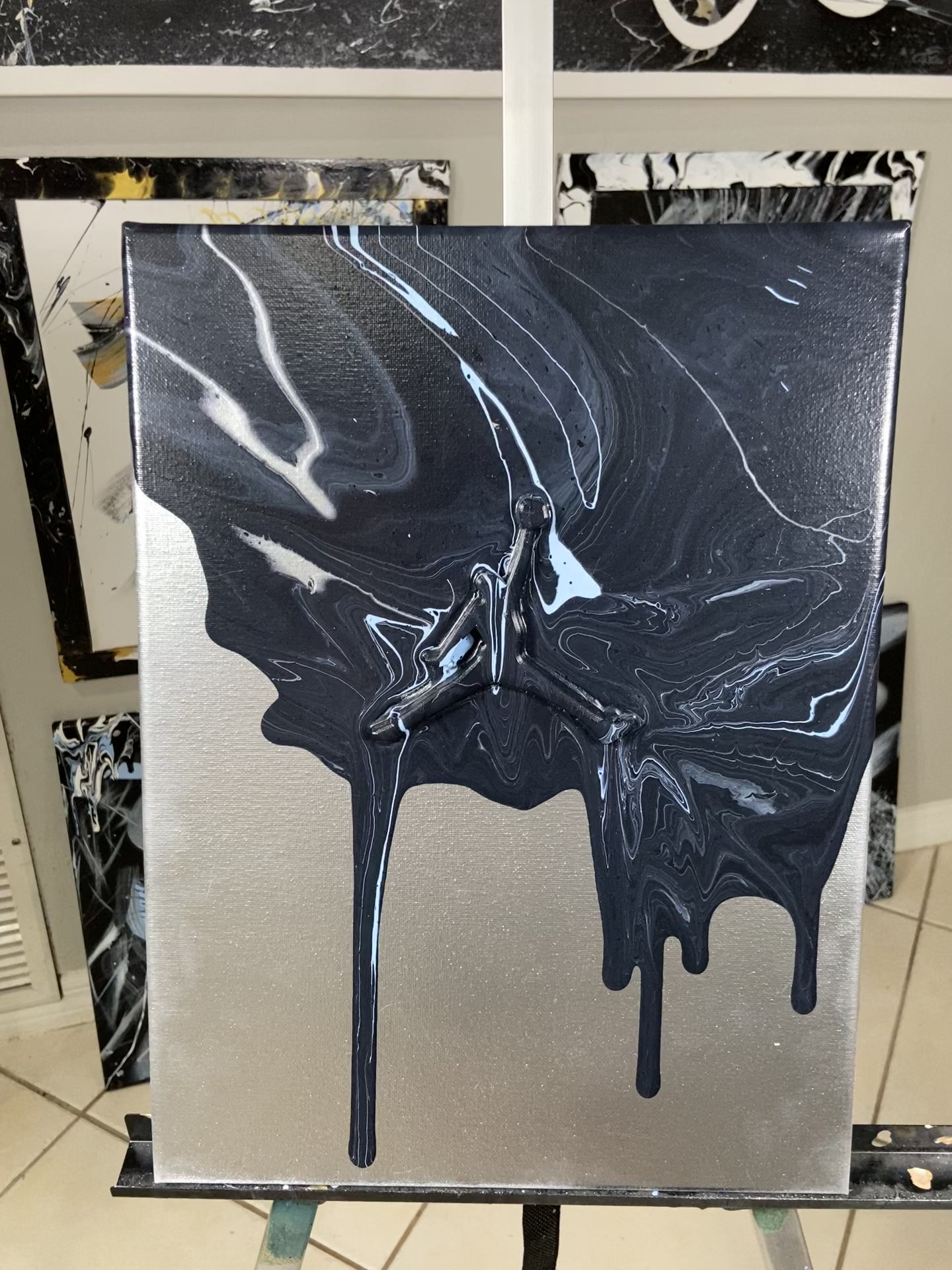 3D Printed Sculpture and Acrylic Paint and White Canvas - Drip Paint