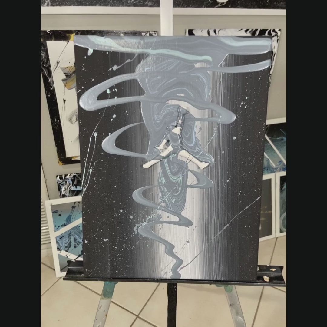 3D Printed Sculpture and Acrylic Paint and White Canvas - Drip Paint