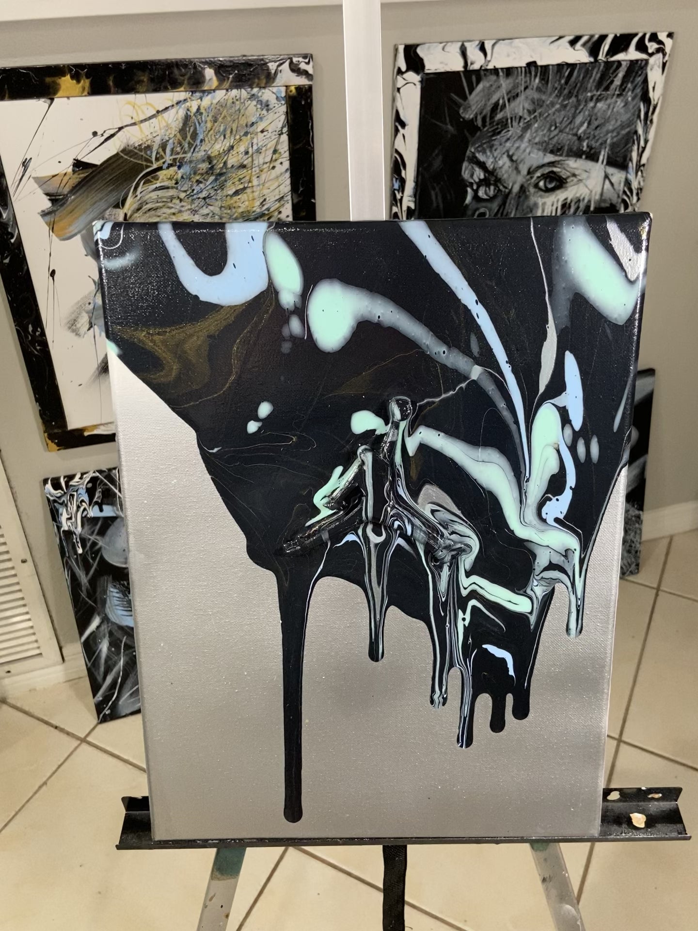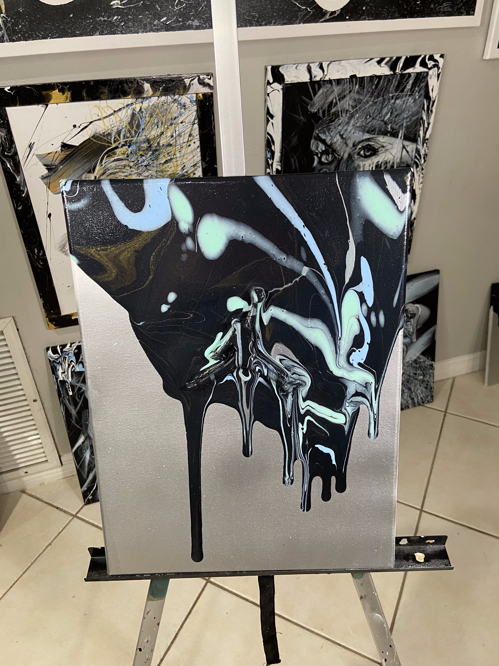 3D Printed Sculpture and Acrylic Paint and White Canvas - Drip Paint