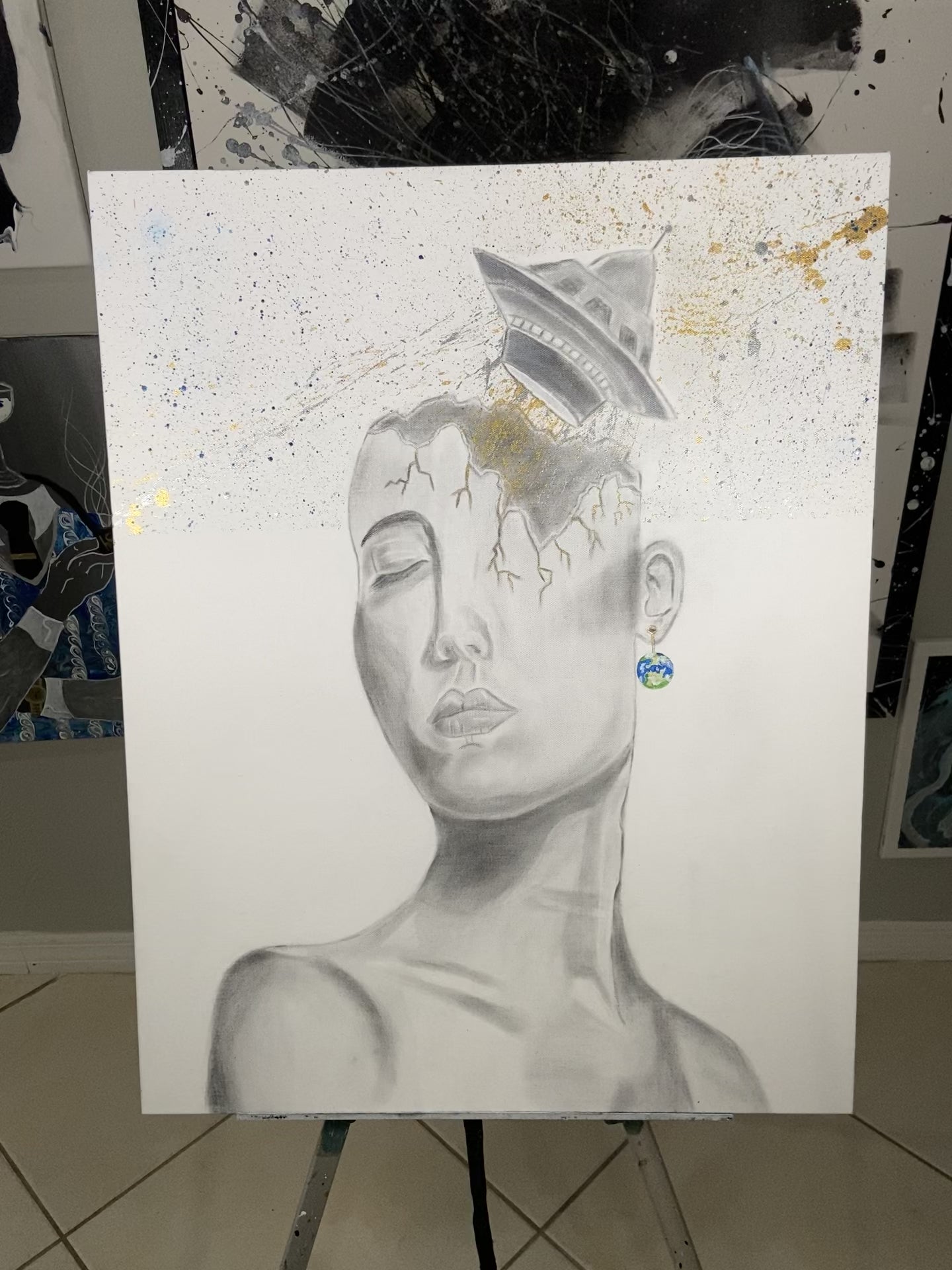 Acrylic Paint and Loose Charcoal Portrait on White Canvas