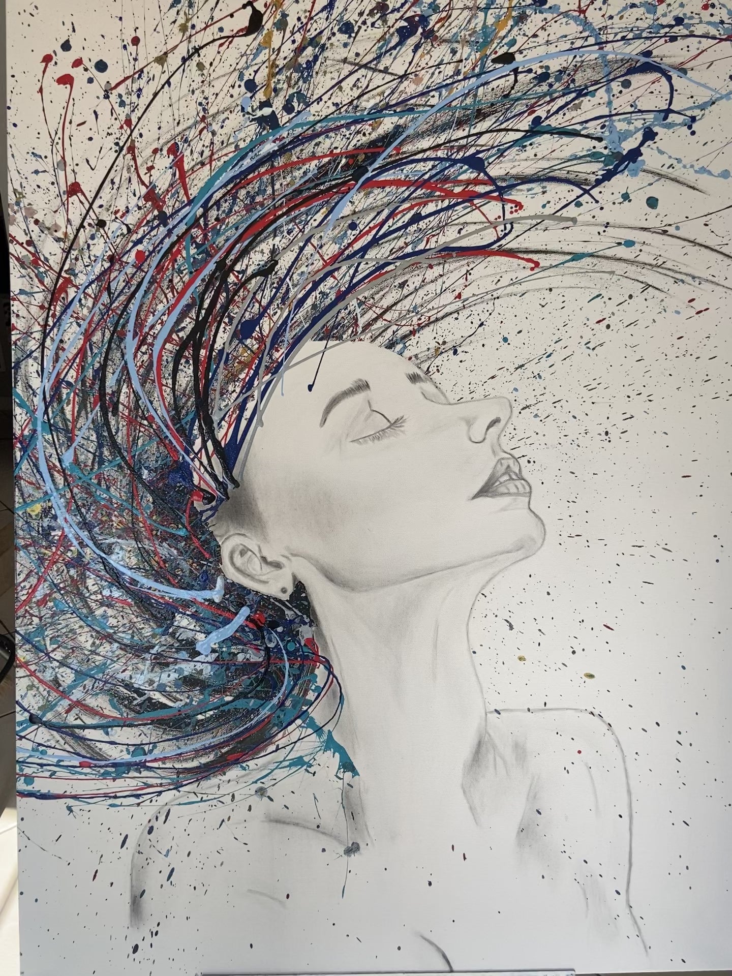 Acrylic Paint and Loose Charcoal Portrait on White Canvas